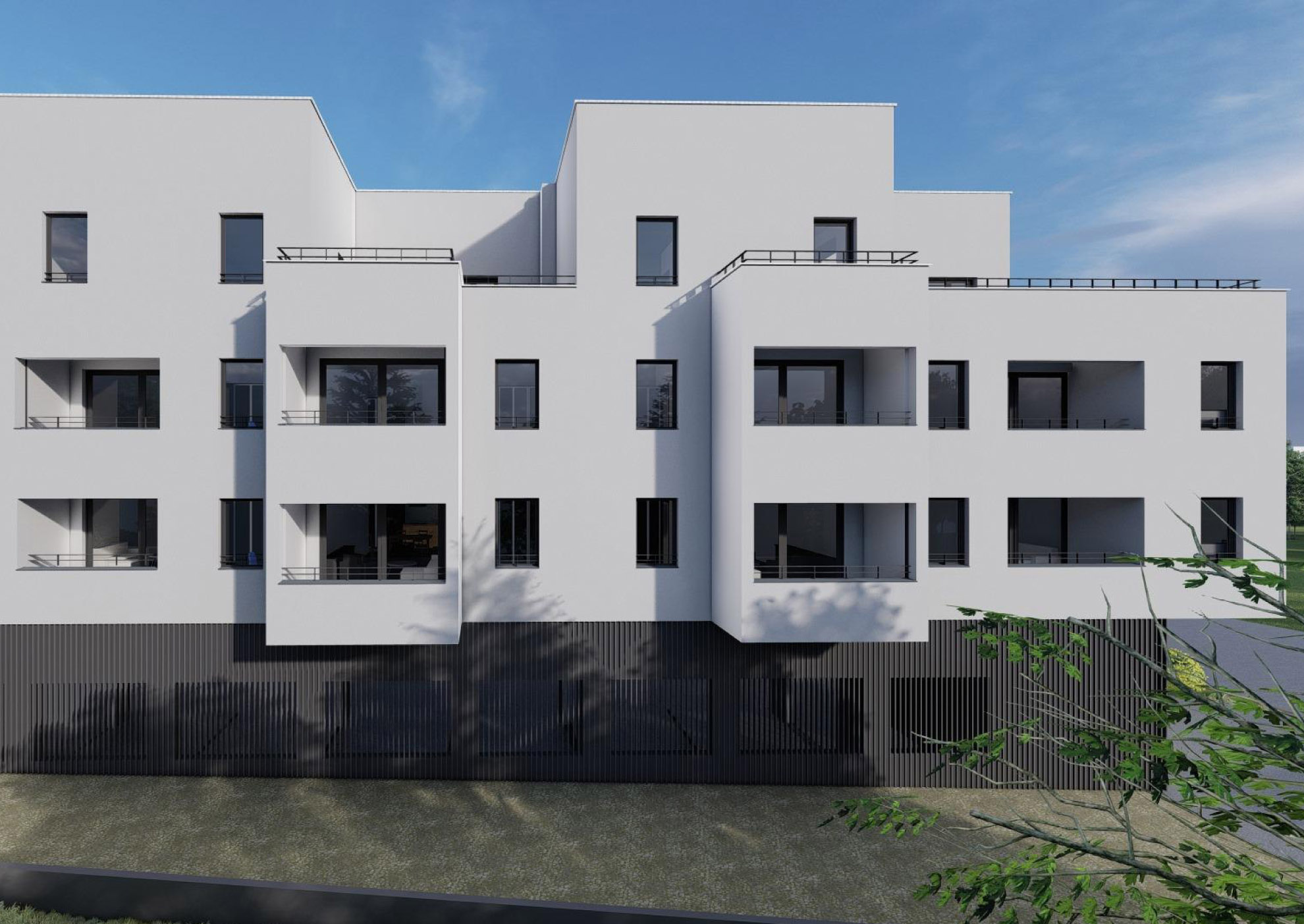 - U prizemlju se nalazi 5 garaža, 15 garažnih parkirnih mjesta te 17 prostorija spremišta. Vanjski parking se sastoji od 17 parkirnih mjesta. U nadzemnom dijelu građevine nalazi se ukupno 24 stambene jedinice. Zgrada ima jedan glavni ulaz.
